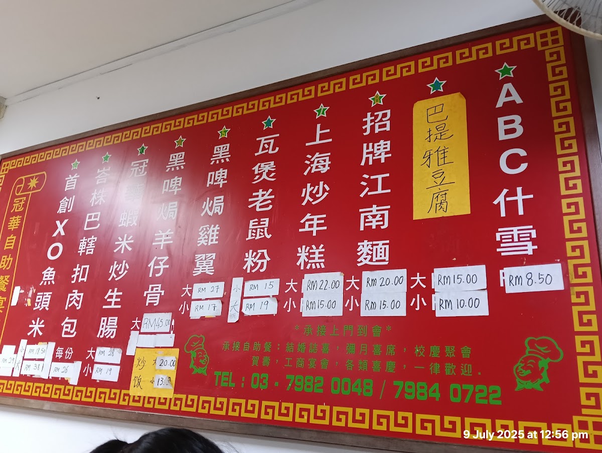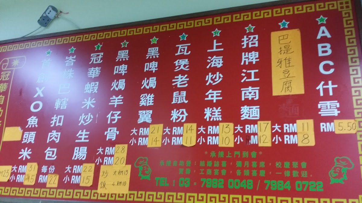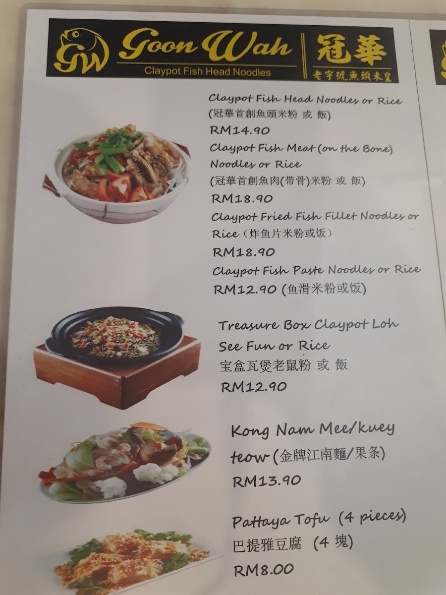 The menu offered features a variety of traditional Chinese dishes with a focus on noodle and claypot specialties. Signature items include fish head noodles prepared with XO sauce, claypot silver needle noodles, and lou shu fun (rice noodles), all of which are commonly ordered. Additional dishes include claypot rice noodles, fried intestines with small prawns, and baked chicken wings with dark beer marinade.